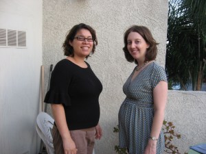 Anyway, here’s a picture of me and Ellen–both of us are almost 18-weeks pregnant in the shot. I imagine these will just get funnier as we get larger and larger.