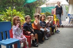Anyway, even though today was Mateo’s first day at the DC, he’d been preparing for it for a while. For one, he’s in the third (and last) batch of kids moving from the LC to the DC this summer, so he’s seen his friends go through the process before him. Also, three weeks before transition, Mateo and the seven other kids in his move-up group started eating lunch outside in a different area. There they discussed, with a teacher, the Discovery Center, what it was like, who would be there, what kinds of toys they had, and so forth. Then last week was transition week. On Tuesday the kids went to the DC for snack (I drove four toddlers in my car–it was a total toddler party bus and they loved it!) and on Thursday they visited the DC from snack through lunch (and came out literally jumping with excitement, all of them). Then this past Saturday all the transitioning families went to the Learning Center to say goodbye to the teachers (and toys), pick up the kids stuff from their cubbies, drive to the Discovery Center to meet the new teachers there and put all the things away in the cubbies there. So Mateo felt really comfortable with the environment when we started today. Let’s hope the rest of the week goes just as smoothly!